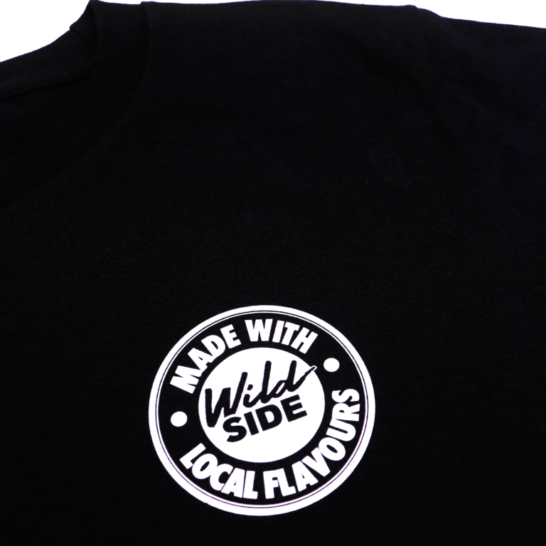 Front hit repping the Wildside crest. Back hit screaming the lifestyle: LIVE WELL. STAY WILD.